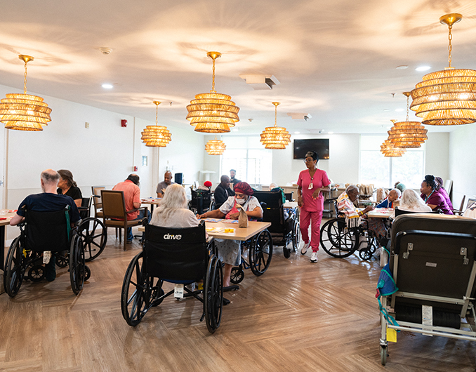 Thoughtfully Designed for Comfort & Care. Our environment is intentionally arranged to support healing, mobility, and peace of mind — with comfortable spaces, clear wayfinding, and areas designed to help residents feel safe, supported, and at ease.